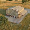 Striking Tan & Brown Exterior: Neutral earth-tone panels with dark trim blend naturally with rural or open landscapes while maintaining a bold presence.
