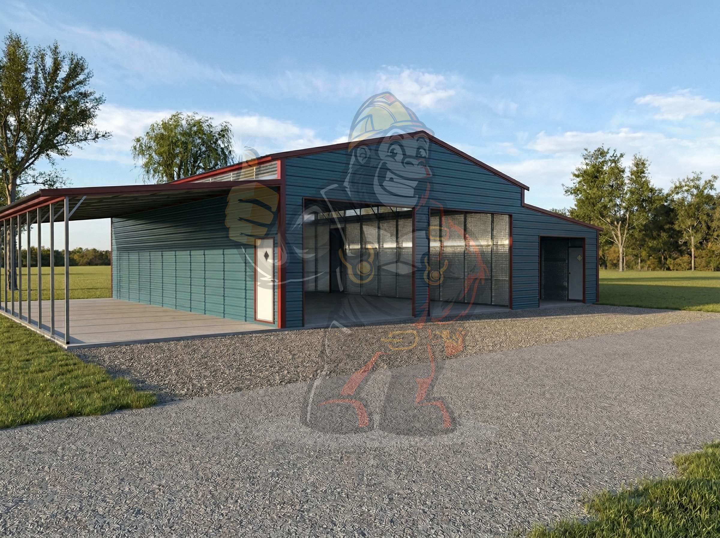 Upgrade your property with The Iron-Hide 30' x 40' x 12' Steel Barn, this spacious two-tone metal barn offers generous room for multi-vehicle storage, …